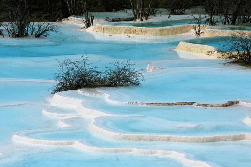 「世界遺産の黃龍を見學(xué)。五彩池はトルコのカムッパレのように、きれいでした。」