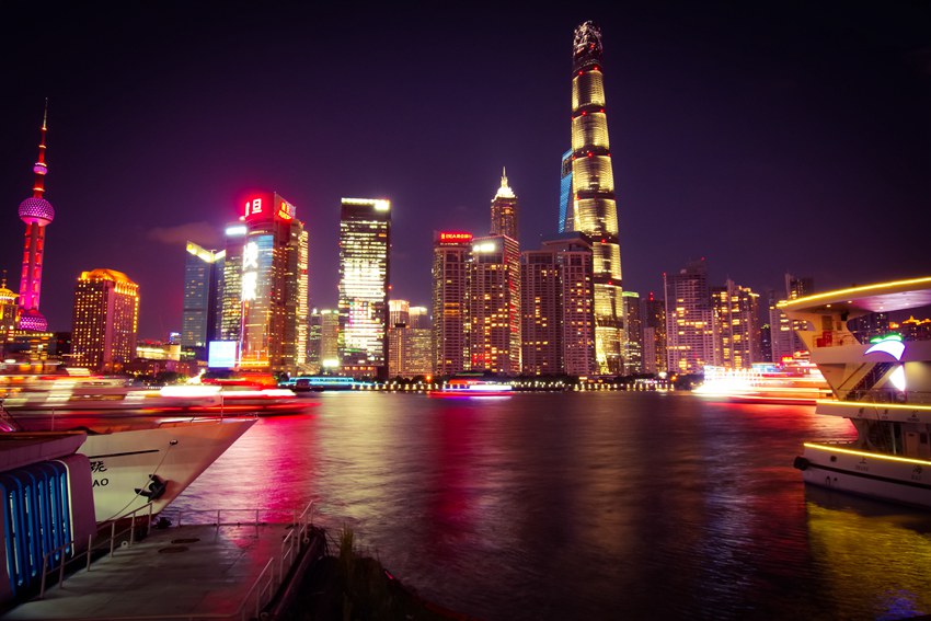 「対岸にそびえる高層ビル群と川を渡る船の明かりが怪しくも美しく、中國(guó)の発展と近代化を感じさせられる。」