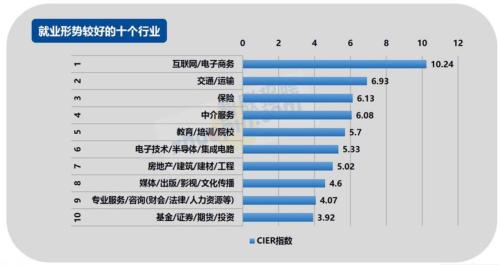 業(yè)界別ランキングを見ると、2017年第4四半期の就職景気が最も良かったのは、引き続き、インターネット/電子商取引業(yè)だった。このほかには、交通/運(yùn)送、保険、仲介サービス業(yè)も好調(diào)だった。
