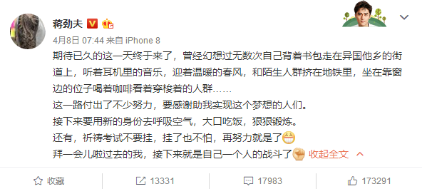 人気俳優(yōu)?蔣勁夫(ジャン?ジンフー)がこのほど、日本に語(yǔ)學(xué)留學(xué)し、他の學(xué)生らを前に自己紹介をしている様子を捉えた動(dòng)畫がネット上に流れた。蔣勁夫は動(dòng)畫の中で、「みんなと一緒に勉強(qiáng)できてうれしい。僕の名前は蔣勁夫、趣味は漫畫やスポーツです」と話している。この動(dòng)畫には多くのネットユーザーから「いいね!」が寄せられている。今月8日午前、蔣勁夫はSNSで日本に語(yǔ)學(xué)留學(xué)することを明らかにし、「ずっと楽しみにしていた日がついに來(lái)た。今後は學(xué)生という立場(chǎng)で日本で生活し、『テストで赤點(diǎn)を取らないように』と祈っている」と書き込んでいた。 (編集KN)