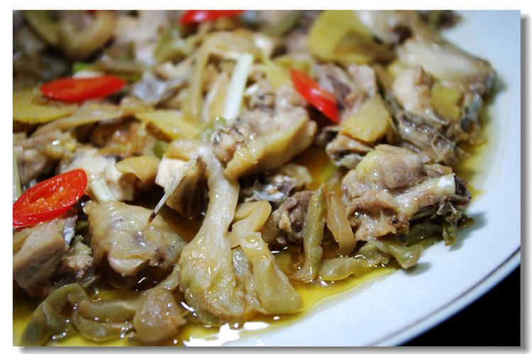 1.鶏はきれいに洗ってから適當(dāng)な大きさにぶつ切りし、塩、砂糖、酒、片栗粉、ピーナツ油、ザーサイを合わせて混ぜ込み、10分間ほど漬け込む。