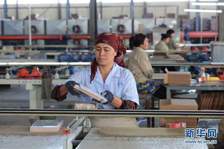 2017年5月1日、ウズベキスタン?シルダリヤ州の鵬盛工業(yè)パークのセラミックタイル生産現(xiàn)場(chǎng)の様子。