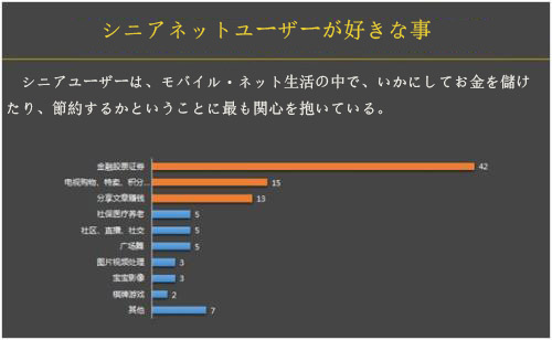シニアユーザーは、モバイル?ネット生活の中で、いかにしてお金を儲(chǔ)けたり、節(jié)約するかということに最も関心を抱いている。