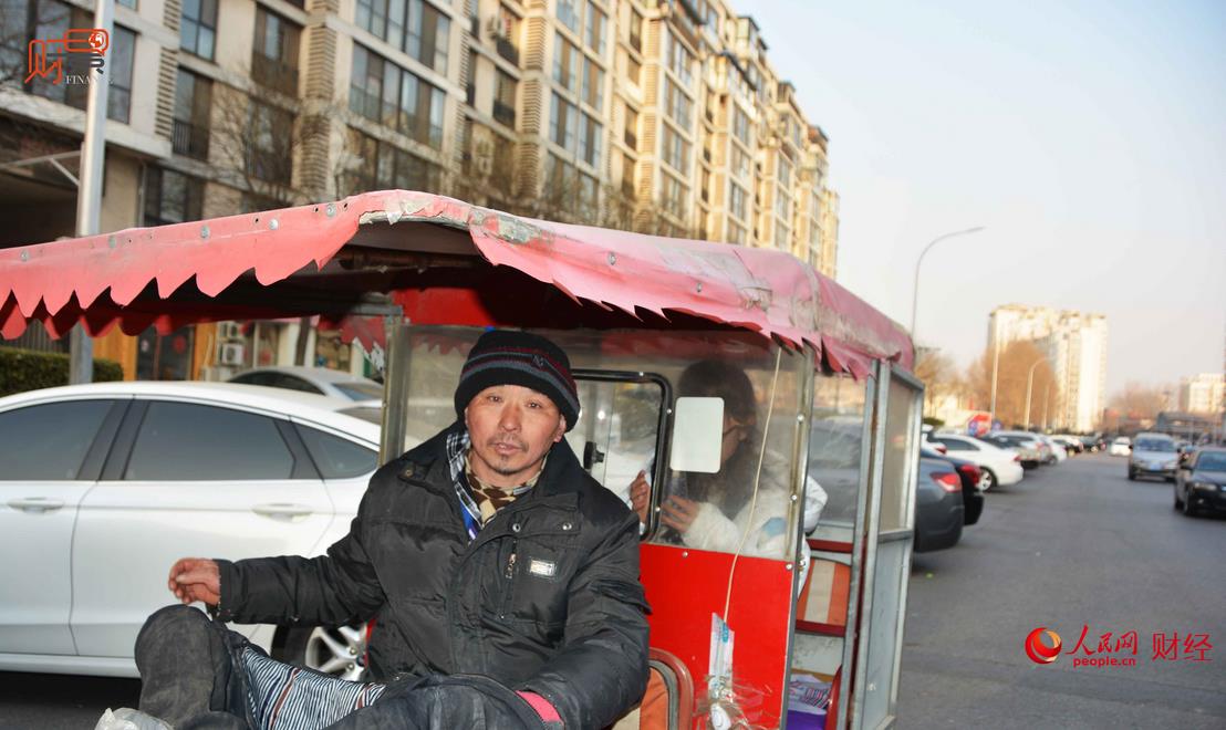 李磊濤さんは今年53歳になる三輪タクシーの運(yùn)転手。朝6時(shí)に家を出て、夜11時(shí)に家に帰る。一日の稼ぎは180元になるという。