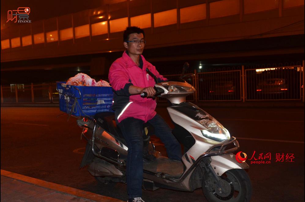 商品を配達(dá)中の生鮮食品配達(dá)員の楊栄停さん(32)は、以前は宅配便の配達(dá)員をしており、デリバリーの配達(dá)員をしていたこともあるという?,F(xiàn)在は生鮮食品のECプラットフォーム「毎日優(yōu)鮮」の配達(dá)員だ。毎朝8時(shí)前に楊さんの乗ったバイクは花園橋の倉(cāng)庫(kù)前に停車し、楊さんは前日深夜に注文された商品を後部座席に取り付けた商品箱に積み込んでいく。