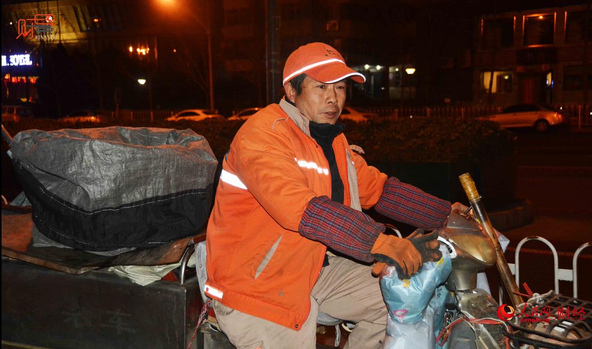 早朝5時(shí)を少し過(guò)ぎて、まだ暗い空の下、清掃作業(yè)員の馮安平さんは仕事を終えて帰り支度を始めた。馮さんは全長(zhǎng)2.7キロメートルのこの通りを、毎日5~6回は清掃しているという。