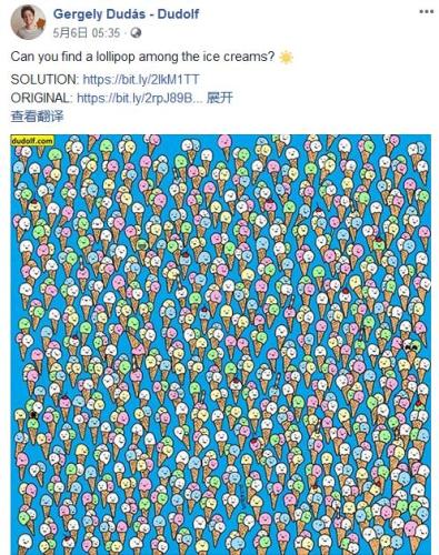 2015年のクリスマスシーズン、中國では、たくさんの雪ダルマの中からパンダを探しだすゲームがネットで話題を集めた。このイラストを描いたハンガリーのアーティスト?Gergely?Dudasさんがこのほど再びネットユーザーたちを唸らせるイラストを発表し、話題を集めている。今回発表されたイラストはたくさんのアイスクリームの中からぺろぺろキャンディーを探すというものだ。中國新聞網(wǎng)が報(bào)じた。