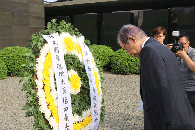 日本の福田康夫元首相が24日、南京市江東門付近にある「侵華日軍南京大虐殺遇難同胞記念館」を訪問しました。同記念館を訪れた日本の首相経験者は、村山富市、海部俊樹、鳩山由紀夫各氏に続いて4人目となります。
