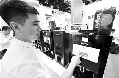 會場では出展企業(yè)がスマートコーヒーメーカーを展示。タッチパネルやスマホQRコード決済、アイス?ホット一體型、顔認(rèn)証などの機(jī)能を備えており、インターネット+コーヒーという新たなモデルでコーヒーをより便利に味わえるようにする。(編集YF)