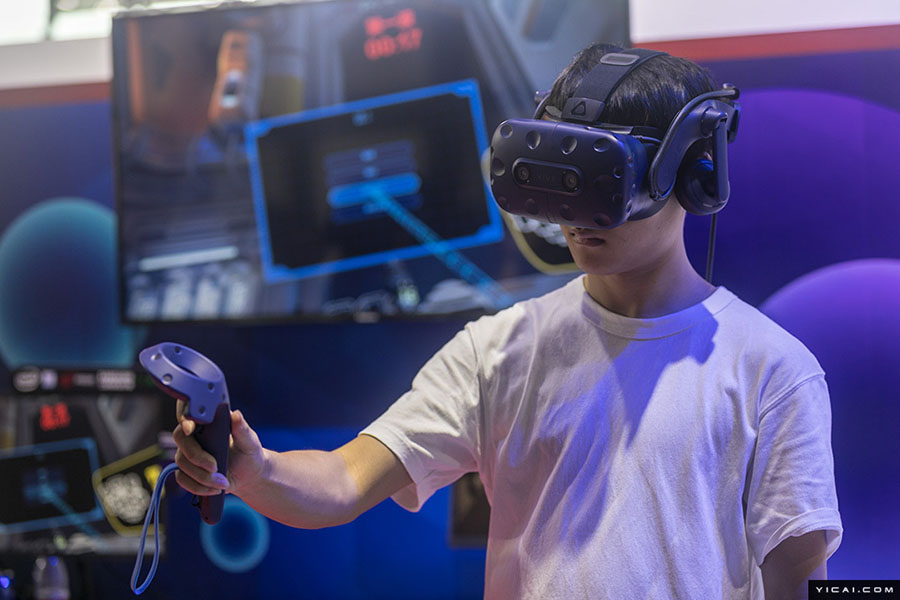 ある展示ブースでVRゲームを體験する來場(chǎng)者。