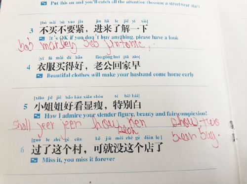 世界各國(guó)は、購(gòu)買力旺盛な中國(guó)人観光客の「爭(zhēng)奪戦」を繰り広げている。海外事業(yè)者の多くは、中國(guó)人向けのサービスや支付寶を?qū)毪筏皮毪郅?、中?guó)人観光客とコミュニケーションが取れるようにと、中國(guó)語(yǔ)學(xué)習(xí)ブームが起きている。多くの事業(yè)者は「藍(lán)寶書」をすでに手にして、勉強(qiáng)を始めているだけでなく、その発音を忘れないように、中國(guó)語(yǔ)の上に英語(yǔ)で読み方をつけたりしているという。