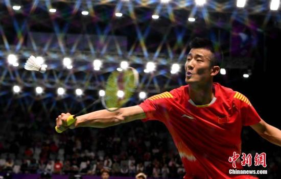 8月20日、ジャカルタ?アジア競技大會バドミントン男子団體準々決勝、中國は中國香港に3-0で勝利した。試合中の諶龍選手。(撮影?王東明)