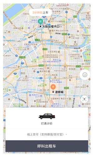 滴滴出行の中國(guó)版アプリを使って大阪でタクシーの配車依頼が可能に。