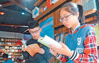 10月4日、河北省邯鄲市渉県の新華書(shū)店で本を読む子ども。河北省各地で國(guó)慶節(jié)連休中、書(shū)店に足を運(yùn)び、本を買(mǎi)い、読んで連休を過(guò)ごす人が多い。