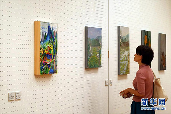東京世田谷美術(shù)館で中國(guó)の畫家による作品を鑑賞する女性 (10月8日、撮影?王可佳) 。
