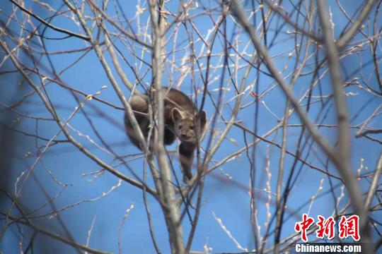 漠河市北極村で目撃された國家1級保護動物のクロテン(寫真提供者?王鉄雙)。