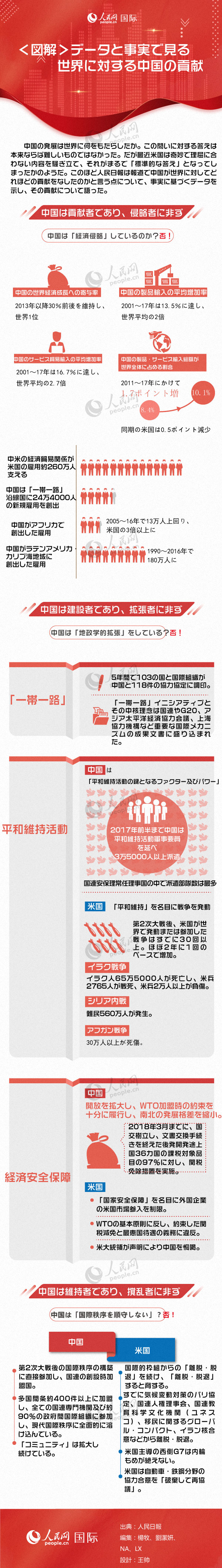 中國の発展は世界に何をもたらしたか。この問いに対する答えは本來ならば難しいものではなかった。だが最近米國は奇妙で理屈に合わない內(nèi)容を騒ぎ立て、それがまるで「標準的な答え」となってしまったかのようだ。このほど人民日報は報道で中國が世界に対してどれほどの貢獻をなしたのかと言う點について、事実に基づくデータを示し、その貢獻について語った。(編集NA、LX)