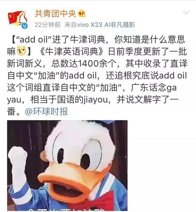 中國語の「加油」を英語に直訳した「add oil」は、元々は中國語を無理やり直訳したデタラメな英語表現(xiàn)であり、英語の教師からは批判され、間違いと指摘される類の英語表現(xiàn)だった。しかしその後、巷で流行し、ついには世界で最も権威ある英語辭典「OED」にまで収録され「合法的地位」を得るとはだれが予想したことだろう?