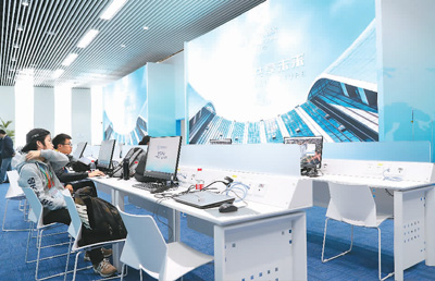 11月2日、輸入博覧會(huì)プレスセンター2階のコワーキングスペースを體験するメディアの記者。