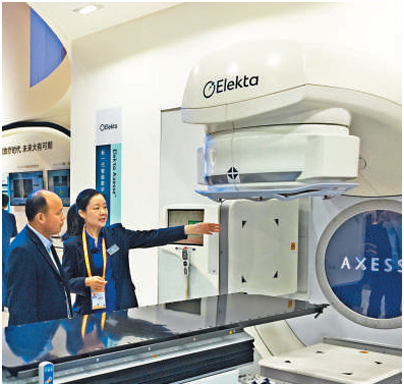 中國(guó)國(guó)際輸入博覧會(huì)でエレクタ株式會(huì)社が新たな腫瘍治療用スマートデジタル化プラットフォームElekta Axesseを紹介。撮影:黃超?記者