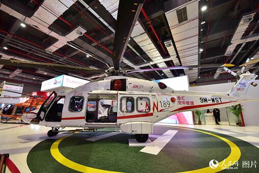 今回の博覧會で最も高価な展示品:価格2億元(約32億7千萬円)のイタリアのレオナルド社のヘリコプター「AW189」。