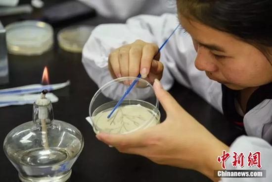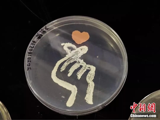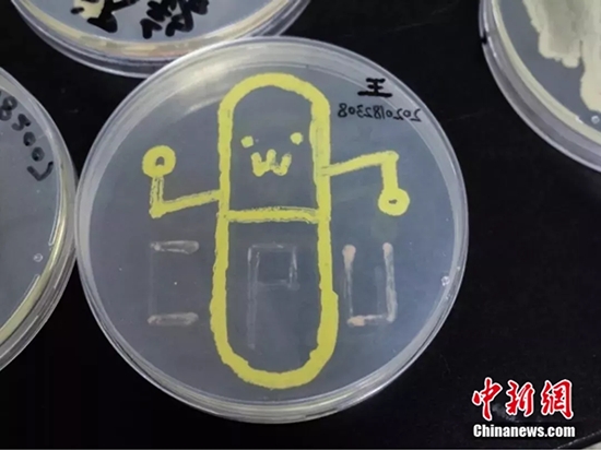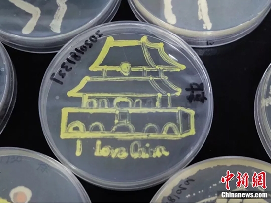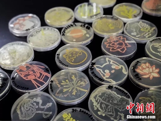 中國(guó)薬科大學(xué)の學(xué)生たちはこのほど微生物の実験技術(shù)を利用して、細(xì)菌を畫(huà)材に、細(xì)菌培養(yǎng)シャーレをキャンパス代わりにし、細(xì)菌で図案を描いた。