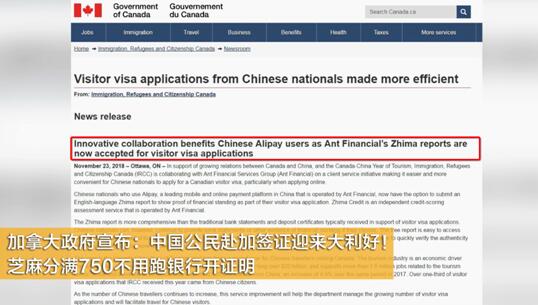 カナダ移民局が公式サイトでこのほど明らかにしたところによると、カナダを訪れる中國人観光客はアント?フィナンシャル傘下の第三者信用情報機関?芝麻信用に査証(ビザ)に関する報告を提出して、経済力や約束履行力を証明する方法を選択できるようになった。26日以降、芝麻ポイントが750ポイント以上ある人は、支付寶(アリペイ)のアプリケーションを開き、「芝麻信用」、「信用管理」、「芝麻査証方向」の順にクリックしていけば、このサービスを利用することができる。これまで中國國民がカナダのビザを申請する場合には、経済力を証明するために直近6ヶ月間の銀行普通預金口座の取引記録のコピーや、5萬元(約82萬円)以上の預金殘高を連続して3ヶ月間保持している殘高証明書などを用意しなければならなかった。「北京日報」が伝えた。