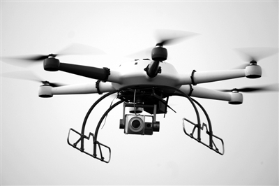 包頭蜂巣航空科技有限公司の最新ドローン「HC-330」。下のカメラに見える裝置が「レーザー砲」