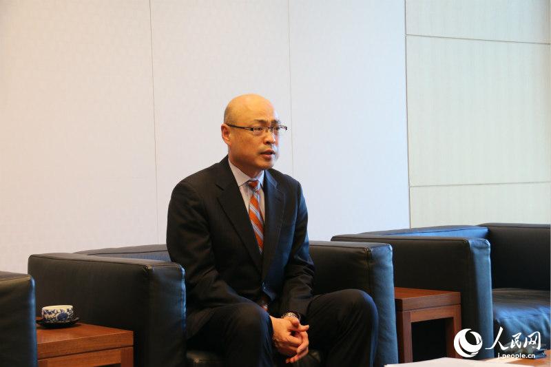 人民網(wǎng)の取材に応じるみずほ銀行執(zhí)行役員の岡豊樹氏(撮影?呉穎)。