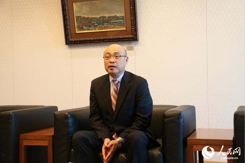 人民網(wǎng)の取材に応じるみずほ銀行執(zhí)行役員の岡豊樹氏(撮影?呉穎)。