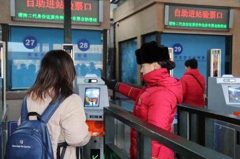 (中)為迎接即將來(lái)臨的2019年春運(yùn),北京站重新改造了進(jìn)站驗(yàn)票口,改造后的進(jìn)站口,人臉與采集功能的自助驗(yàn)證驗(yàn)票設(shè)備(“自助刷臉”設(shè)備)由原來(lái)的10臺(tái)增加至12臺(tái),通過(guò)速度平均為3秒/人。