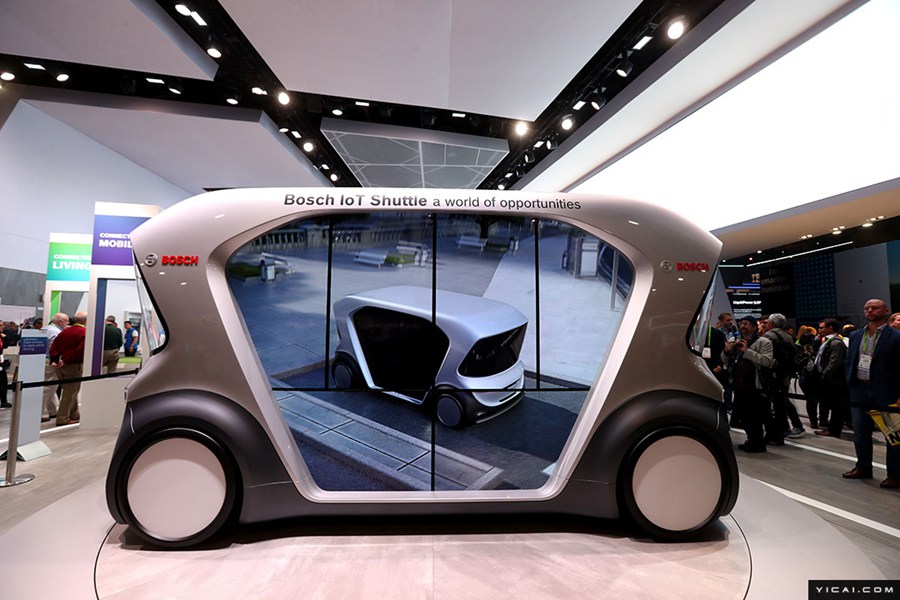 現(xiàn)地時(shí)間の2019年1月9日、米國(guó)ネバダ州ラスベガスで、ボッシュが初披露した自動(dòng)運(yùn)転電気バスのコンセプトカー「IoT Shuttle」。