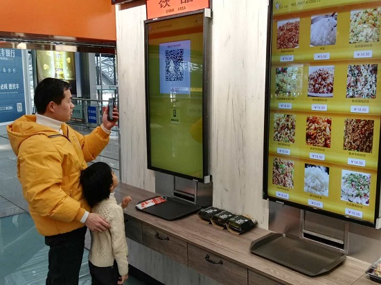 筆者は大型ディスプレイに表示されている料理?主食?飲み物の種類と価格に基づき選択を終えると、タッチパネルを操作し注文してみた。価格は26元(1元は約16.1円)と表示された。それからQRコードをスキャンし、微信(WeChat)もしくは支付寶(アリペイ)で決済すれば、スマートシステムは直ちに料理の加熱を開始し、料理を運んでくれた。プロセス全體がスムーズで効率的だった。