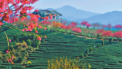 福建省■(■はさんずいに章)平市永福鎮(zhèn)臺品桜花茶園のサクラが現(xiàn)在、見頃を迎え、サクラと茶畑がコラボする絶景が広がっている。人民日報が報じた。