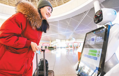 人工知能(AI)の応用が広がる今日、春運ではロボットの姿も見ることができる。今年の春運期間中、武漢駅は2體のかわいらしいロボットを?qū)毪筏?。彼らは愛らしい姿をしているだけでなく、「バス停はどこ?」「最も近い地下鉄までの行き方は?」などの質(zhì)問に直ちに答え、道案內(nèi)できる。列車の発車時間などの情報についても、力強いデータサポートによりよどみなく回答できる。(編集YF)