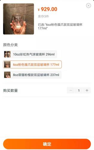 オンラインショッピングプラットフォームで販売されている「貓爪グラス」(スマホによるスクリーンショット)。