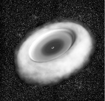 米SF映畫「インターステラー」に登場(chǎng)したブラックホール。周りの円盤は気體でできた降著円盤となっている。