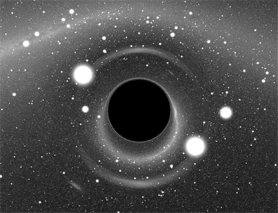 周囲の天體を吸い込むブラックホールのイメージ図。
