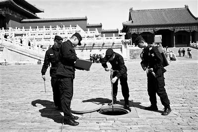 一方で、金水河も昔から故宮の消防水源だった。これらの古代から伝わる防火システムは現(xiàn)在も使用可能だ。毎年冬になると隊(duì)員たちは極寒にも負(fù)けず、金水河で20メートルおきに1平方メートルの氷の穴を開ける。故宮の開放エリアでは通常、殿門前の水瓶に水を溜めず、間違って子供が転落するのを防止する。しかし非公開エリアでは、殿前の水瓶は満水になっている?;馂?zāi)が発生すれば、水瓶の水は距離が最も近い水源となり、迅速な使用に適している。