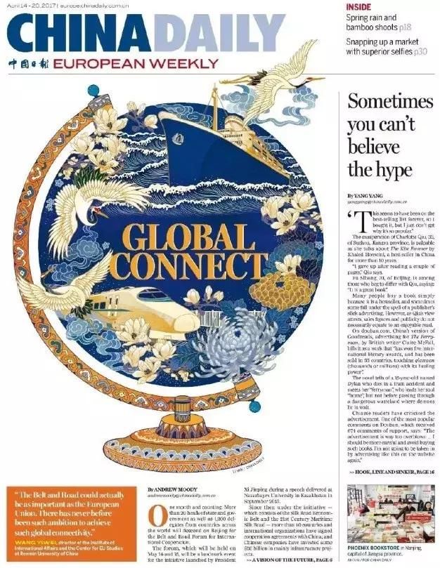 「グローバルコネクト」について伝える報(bào)道では、中國の刺繍のようなタッチで描かれた高級(jí)感漂う青い地球儀に、ツルや祥雲(yún)、そして高速鉄道が勢いよく走り出す姿も描かれ、「グローバル化」の意味をビジュアルで感じることができる。