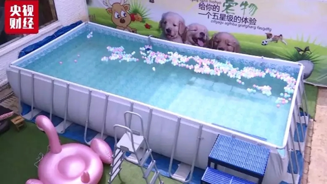 同クラブのペット用プールには、専門の救助員が配置され、ペット用の救命胴衣が準備され、高価なプール水浄化裝置もある。利用料金は1回80元だ。