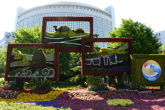 2019年4月25日、北京市が「一帯一路」國(guó)際協(xié)力サミットフォーラムを迎えるため街角に設(shè)置した花壇が、都市に色を添えた。(撮影?胡慶明、人民図片より)