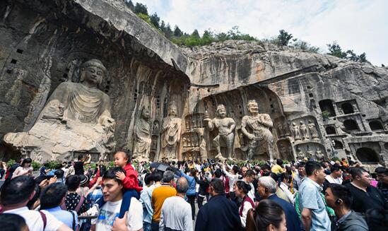 2019年5月4日、河南省洛陽市では、「メーデー」(5月1日)の連休に、世界遺産であり中國の石刻蕓術(shù)の寶庫でもある龍門石窟に大勢の観光客が訪れた。(畫像提供:人民図片)