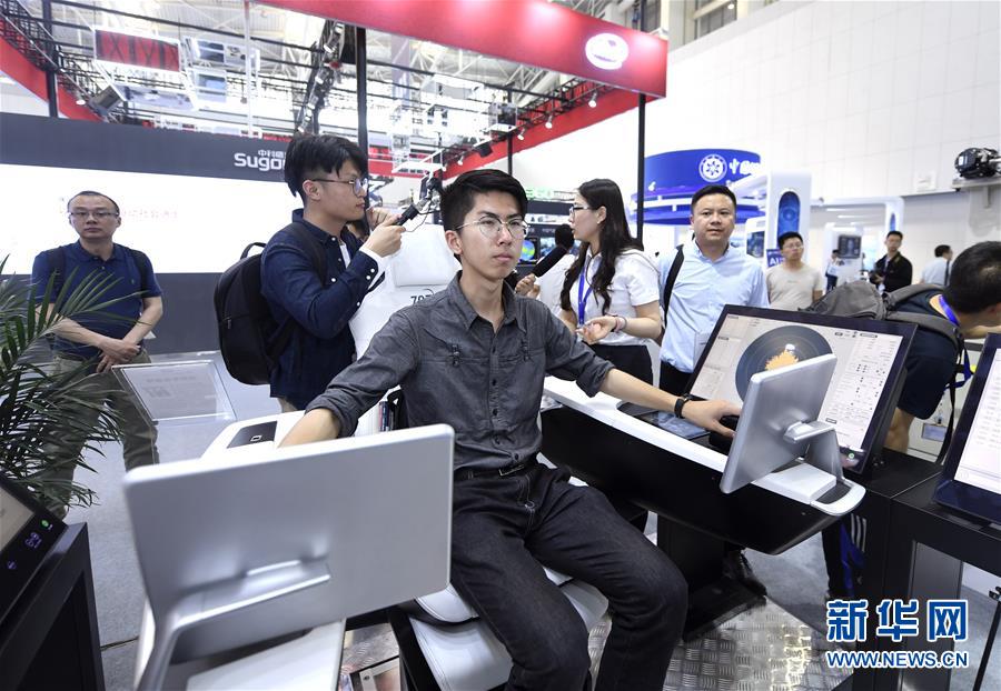 16日の第3回世界スマート大會(huì)スマートテクノロジー展において、來(lái)場(chǎng)者が中船重工第707研究所の展示した船舶スマート座席に試乗した。第3回世界スマート大會(huì)スマートテクノロジー展が同日、天津市で開(kāi)幕し、スマートテクノロジー展とスマート體験イベントが一般開(kāi)放された。新華網(wǎng)が伝えた。(編集YF)