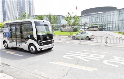自動(dòng)運(yùn)転バスが鄭州市中道東路を走行する様子