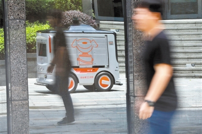 25日、道路上を自動運転中の「スマート配送ロボット」