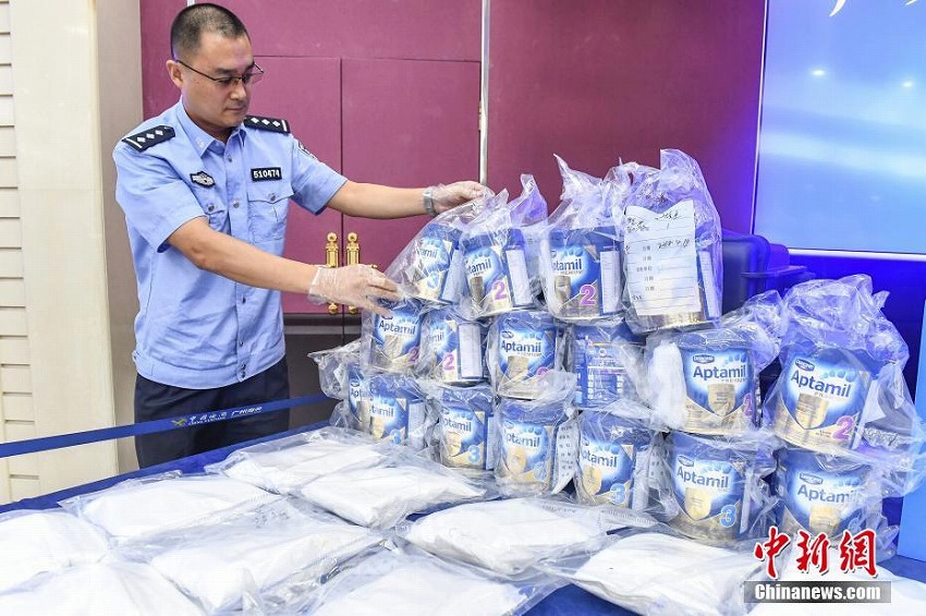 資料寫真、押収した麻薬をメディアに見せる広州稅関の職員。