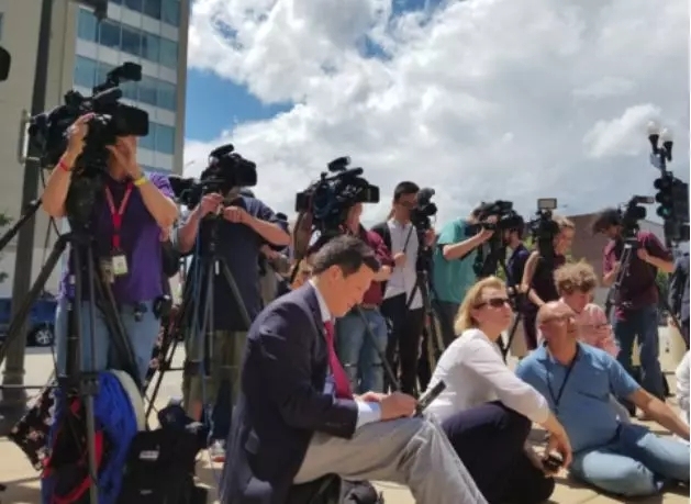 裁判所の外で最新情報(bào)を待つ報(bào)道関係者(ツイッター@ByMattMasterson)