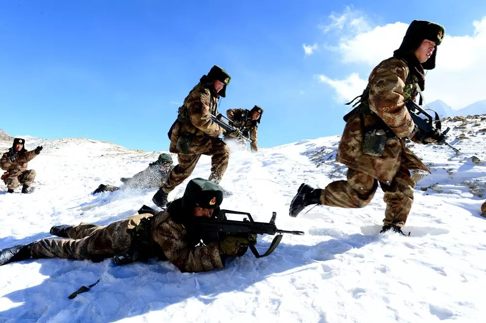 雪上で戦術(shù)訓(xùn)練を行う兵士たち(撮影?王乾)