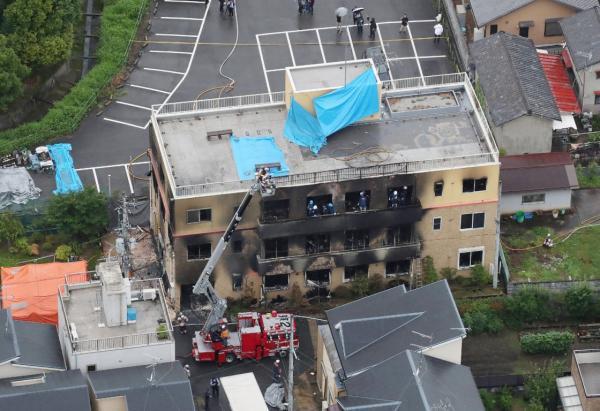 火災(zāi)発生時、スタジオでは約70人の従業(yè)員が働いていたとみられている。放火して身柄を確保された男を含め、36人(男性19人、女性17人)が病院に搬送されたが、うち10人が重傷という。三階建ての建物約690平方メートルが焼け、火災(zāi)発生から約5時間後にようやく鎮(zhèn)圧された。